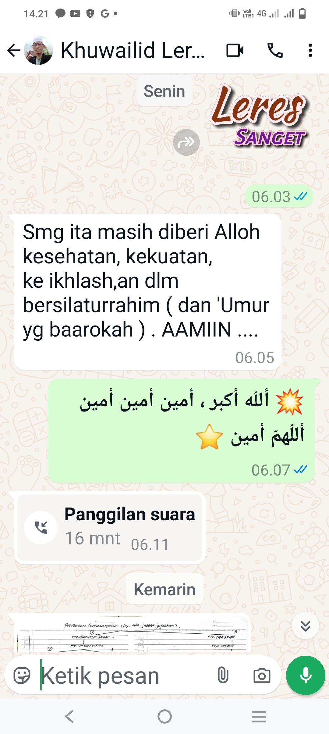 [11/11 06.05] Khuwailid Leran Gresik: Smg ita masih diberi Alloh kesehatan, kekuatan, ke ikhlash,an dlm bersilaturrahim ( dan 'Umur yg baarokah ) . AAMIIN ....